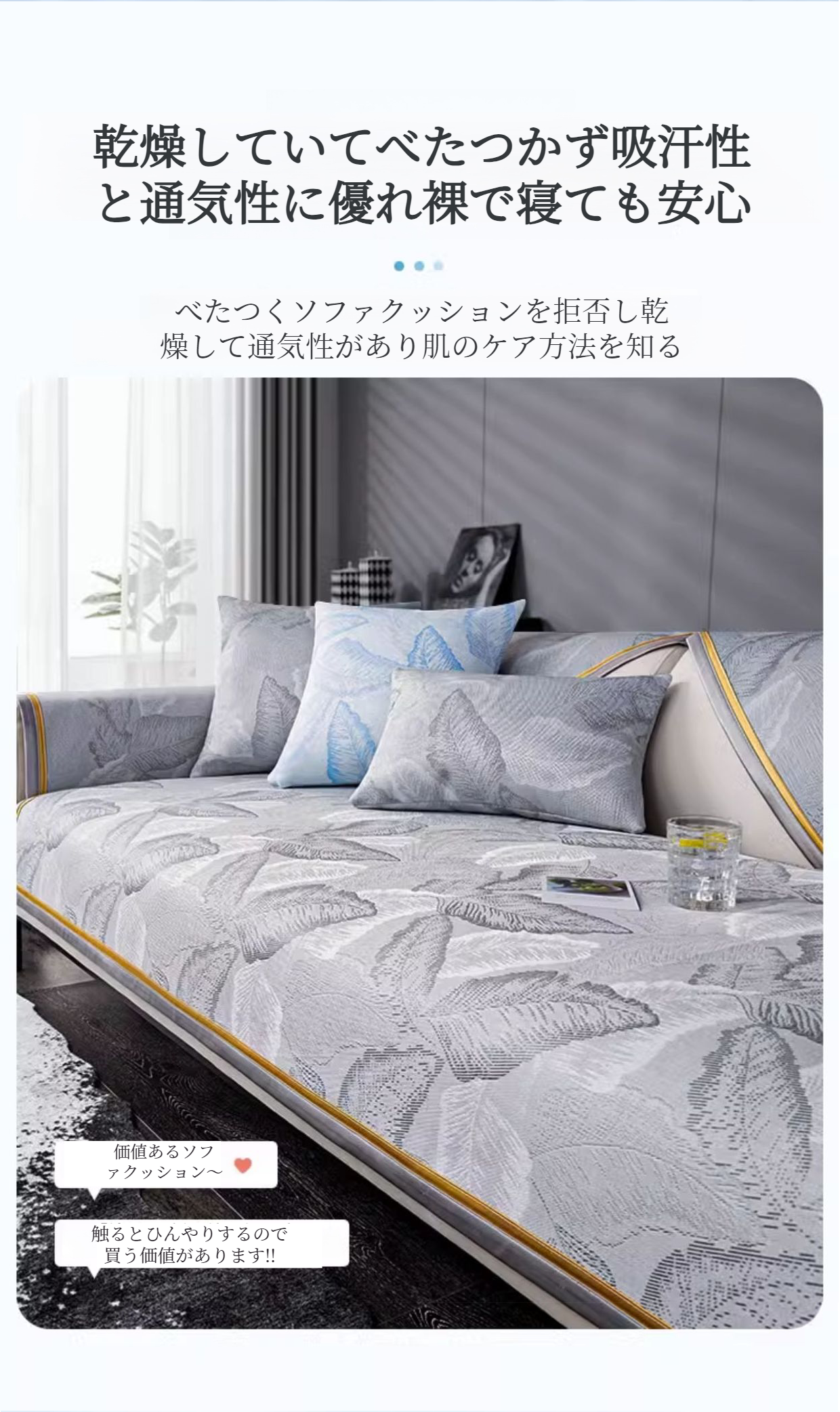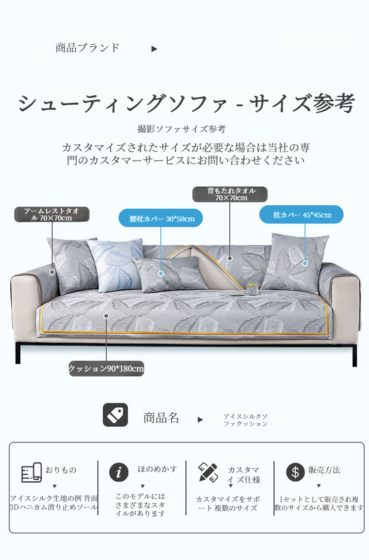 レザーソファークッションアイスシルクカバークロス 夏の滑り止め涼しい感じクッションクーラーカバーカバー